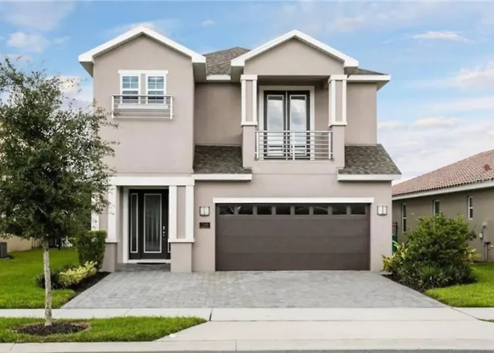 Die 7-Zimmer- Luxurious Modern Villa Near Disney With Theater, Pool And Spa In Encore Resort At Reunion, gelegen im Bezirk Celebration, lädt alle Gäste ein, sich an einem Außenpool zu entspannen oder einen Jacuzzi zu genießen.